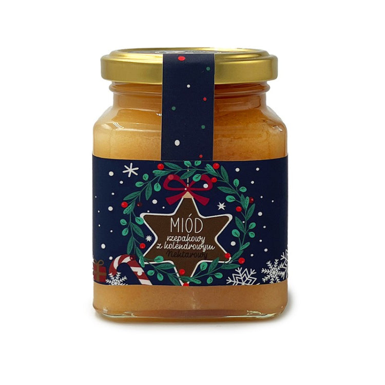 Miód świąteczny kolendrowy z rzepakowym to wyjątkowe połączenie dwóch rodzajów miodu o unikalnych walorach smakowych i zdrowotnych, które idealnie wpisują się w świąteczną atmosferę.